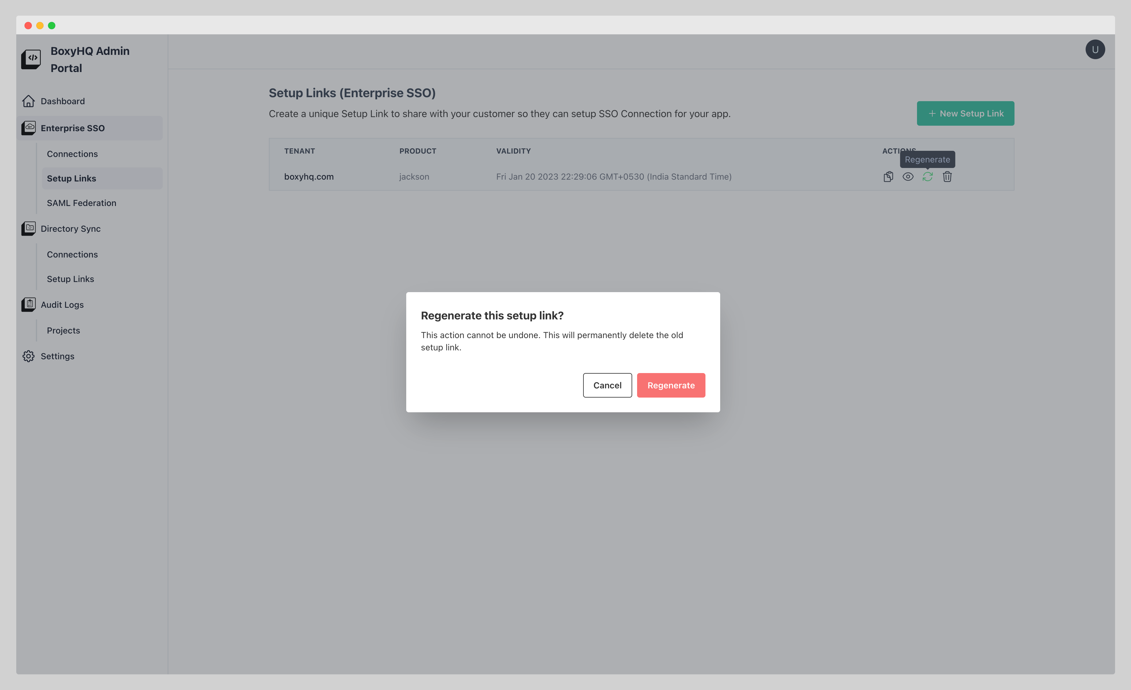 Another way is to go to the Setup Links section under Enterprise SSO menu and Click on Create New/New Setup Link button